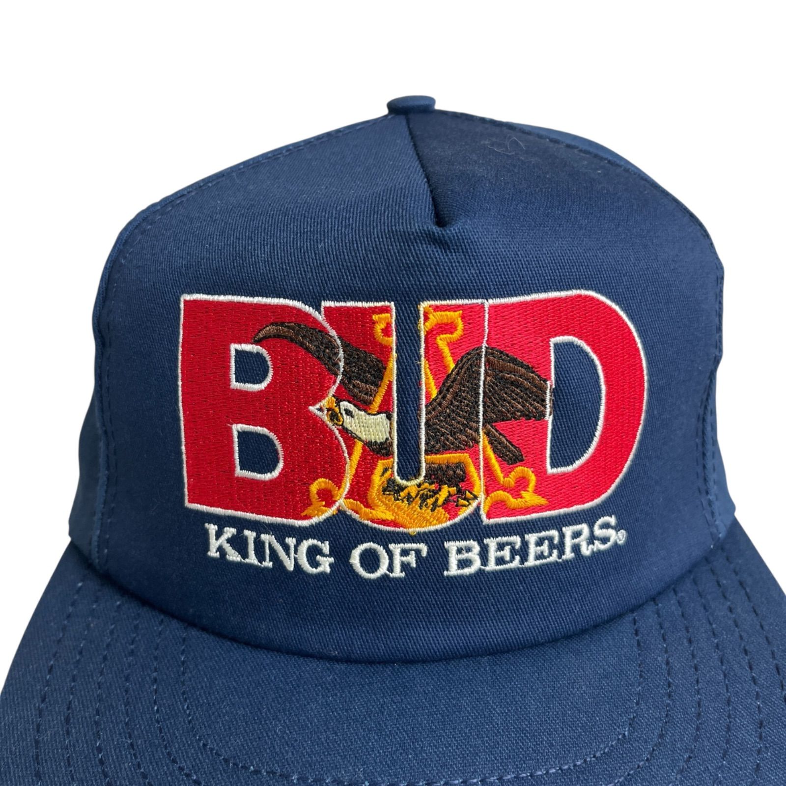 キャップ|帽子 アメリカ製 80-90s BUDWEISER バドワイザー ビンテージトラッカーキャップ 刺繍ロゴ ビール お酒 デカロゴ ネイビー 紺色 MEDICALDB_JP