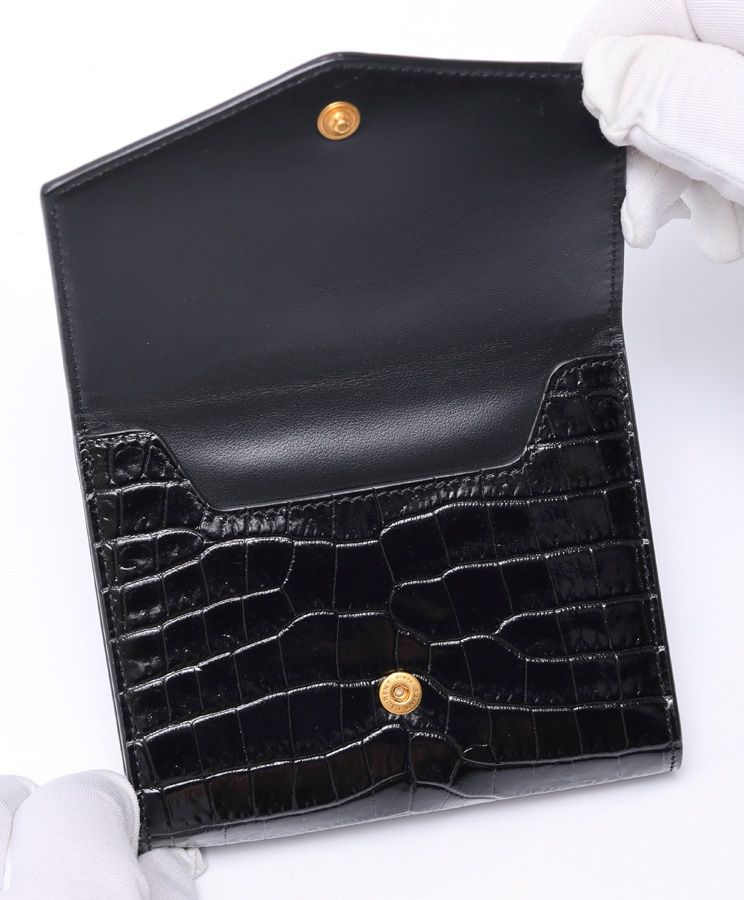 サンローラン | SAINT LAURENT アップタウン コンパクトウォレット | 二つ折り財布 582296 クロコダイルエンボスシャイニーレザー ブラック 商品番号 E-158927 MEDICALDB_JP