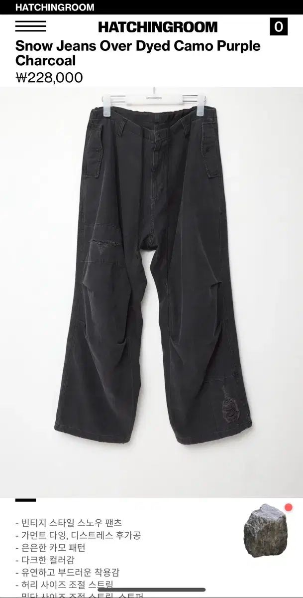 ハッチングルームのスノーシューとパープルチャコールの3サイズのコットンパンツです。数か所にダメージのディテールがあり、ビンテージな外観になっています。ゆったりとしたフィット感で着心地も抜群です。ご不明な点がなければ、すぐに安心してお支払いいただけます!