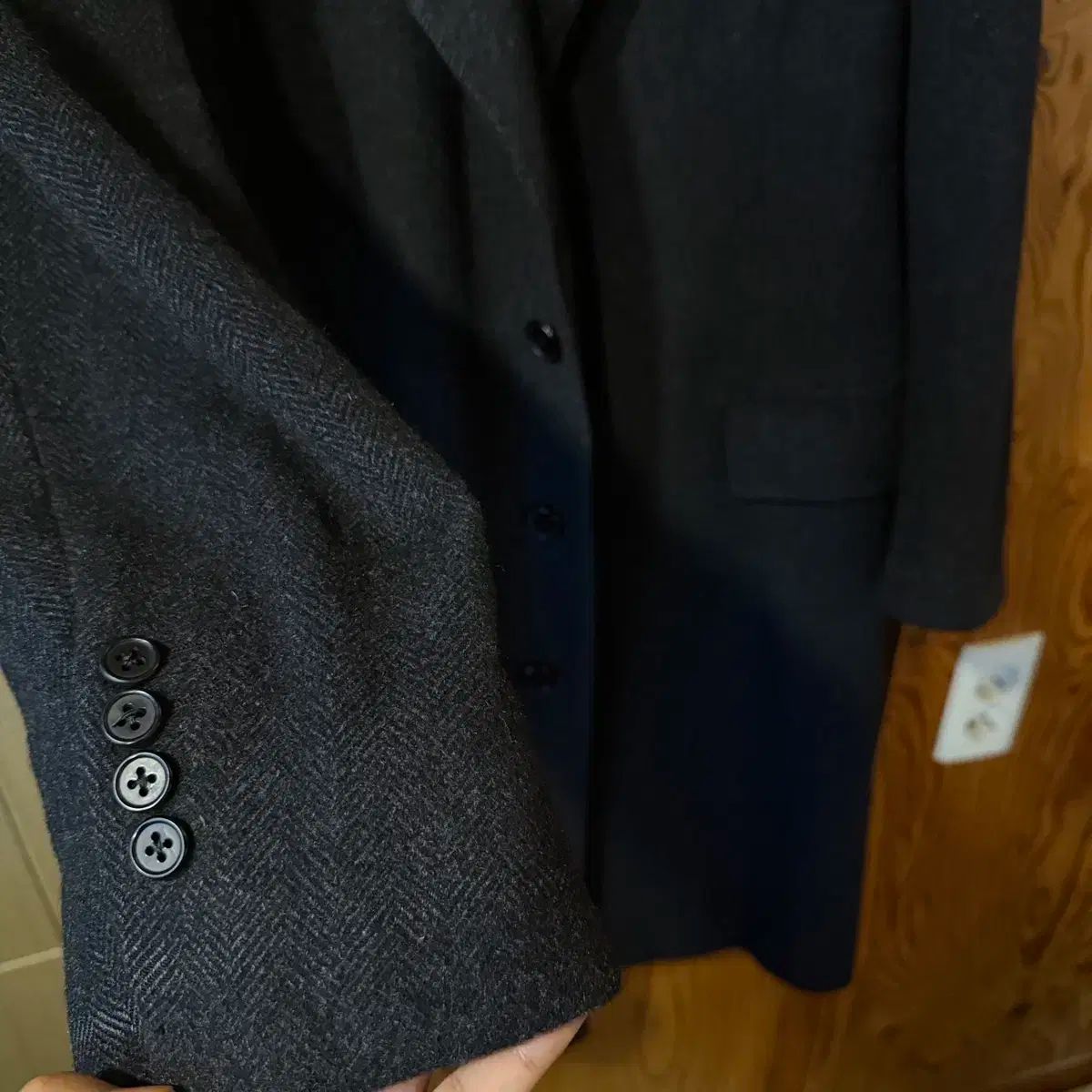 Mitsumine ミツミネ イベリコウール ヘリンボーンツイード チェスターコート 段返り3つボタン チェンジポケット 上着 アウター 長袖 羽織り メンズ サイズM ダークグレー 秋 久喜倉庫店 K675Y