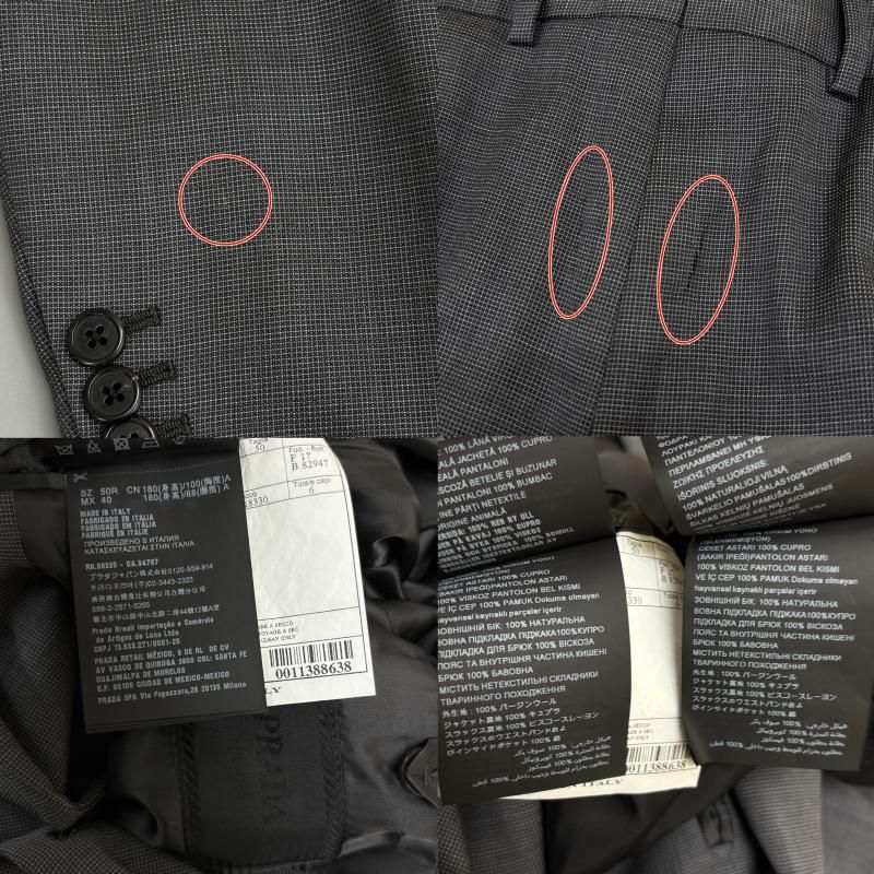 PRADA プラダ スーツ 2B ノッチドラペル テーラード ジャケット ノータック スラックス パンツ スーツ セットアップ 灰色 グレー MEDICALDB_JP