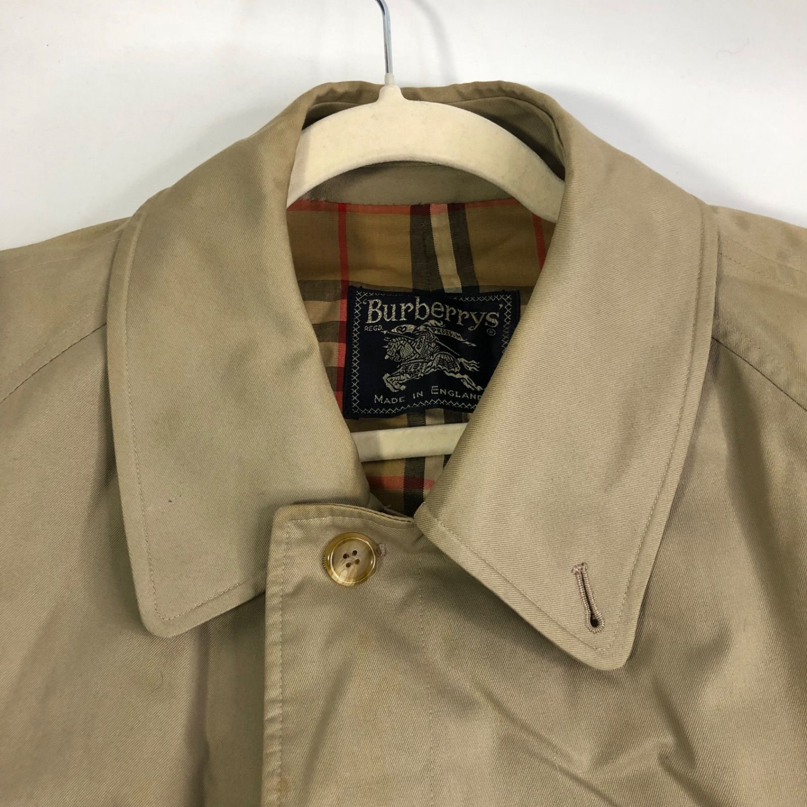 バーバリー BURBERRY コート ステンカラーコート 裏ノバチェック コットン M-L ライトベージュ 英国製