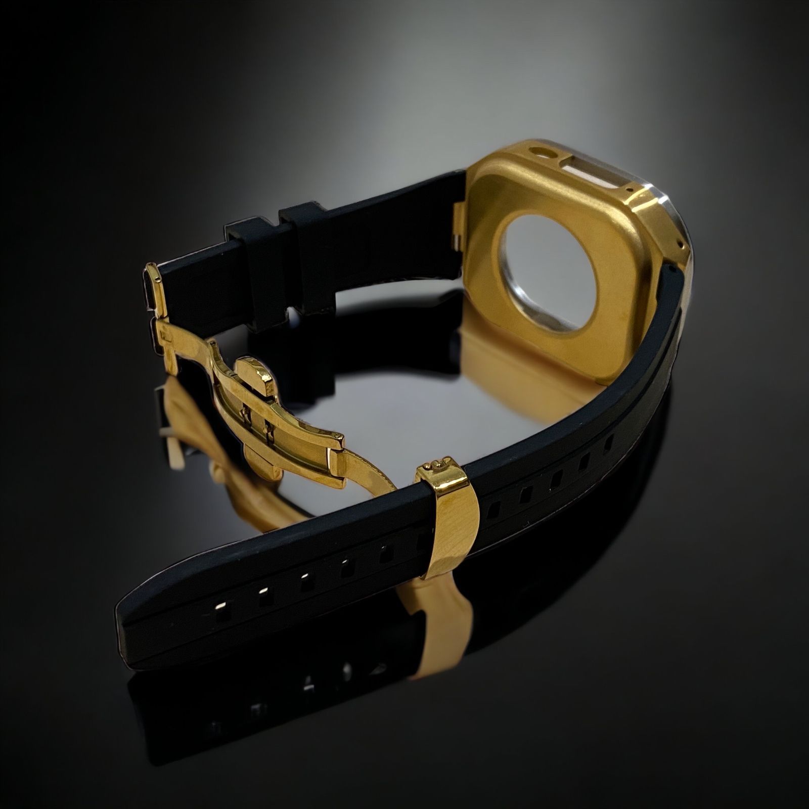 ブラック×シルバーゴールド 49mm apple watch ultraアップルウォッチラバーメタルカバーセット ウルトラ 49ミリ用 カスタム ultra1|2|3 MEDICALDB_JP