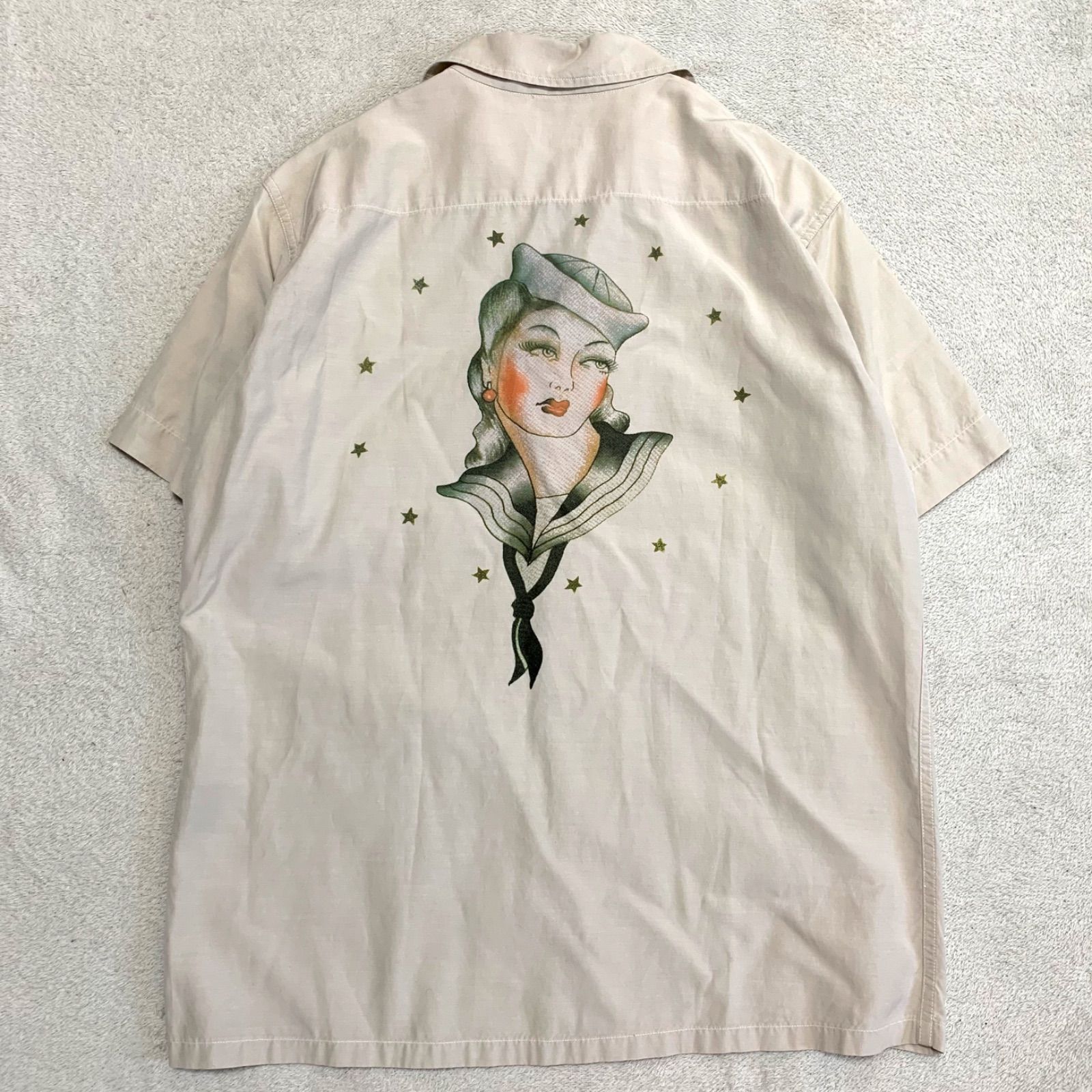 DELUXEWARE HAWAIIAN SHIRT AL-03 VINTAGE ART ハワイアンシャツ アロハシャツ オープンカラー 開襟 ヴィンテージアート セクシープリント ピンナップガール ショートスリーブ 半袖 Sサイズ アイボリー デラックスウエア MEDICALDB_JP