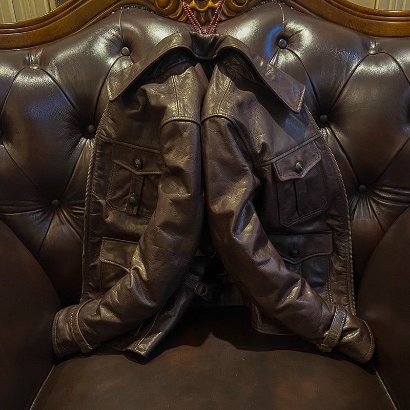 ♥ h 無ブランド メンズ 本革 レザージャケット ヴィンテージ風 秋冬用 修身 多ポケット インポート 無塗装オイルワックス牛革 コットン裏地 感 深ブラウン MEDICALDB_JP