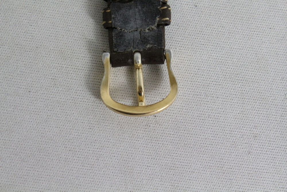 オメガ デ ヴィル 195.0051 クォーツ Cal.1455 GP 革 社外尾錠 GP ゴールドストライプ文字盤 オーバーホール済み