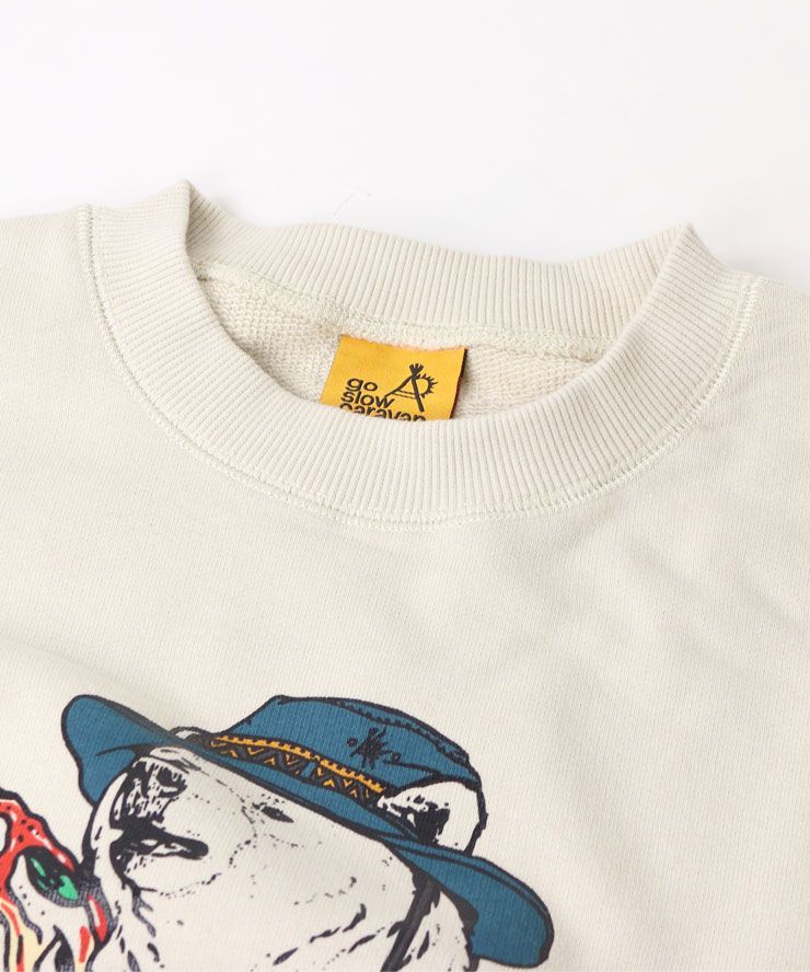 go slow caravan ゴースローキャラバン 空紡糸裏毛 スキレットピザクマ ヘムスピンドル クルースウェット m l xl 352606 メンズ レディース ユニセックス トレーナー 厚手 シロクマ 秋 冬 MEDICALDB_JP