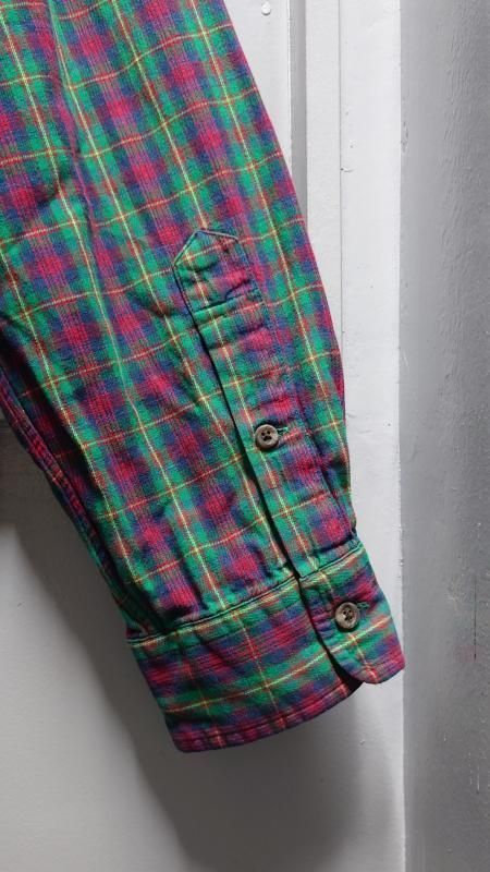 60s WONDER WOOL by ARROW ヴィンテージ ウールネルシャツ 60年代 タータンチェックシャツ 赤×グリーンチェック フランネルシャツ M レッド 赤 古着 ユーズド
