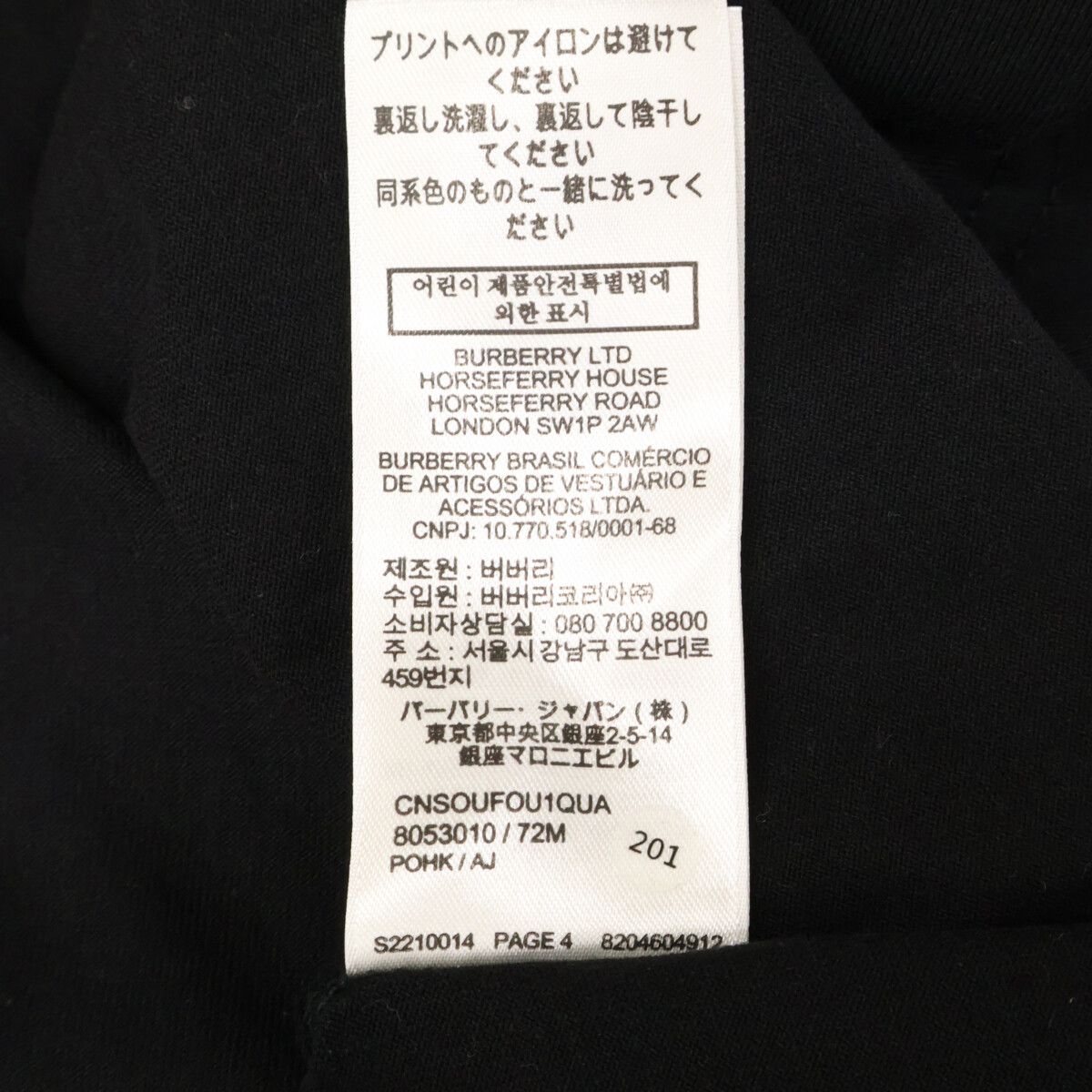 BURBERRY バーバリー ブラック 8053010 コットン Tシャツ Lの検索結果