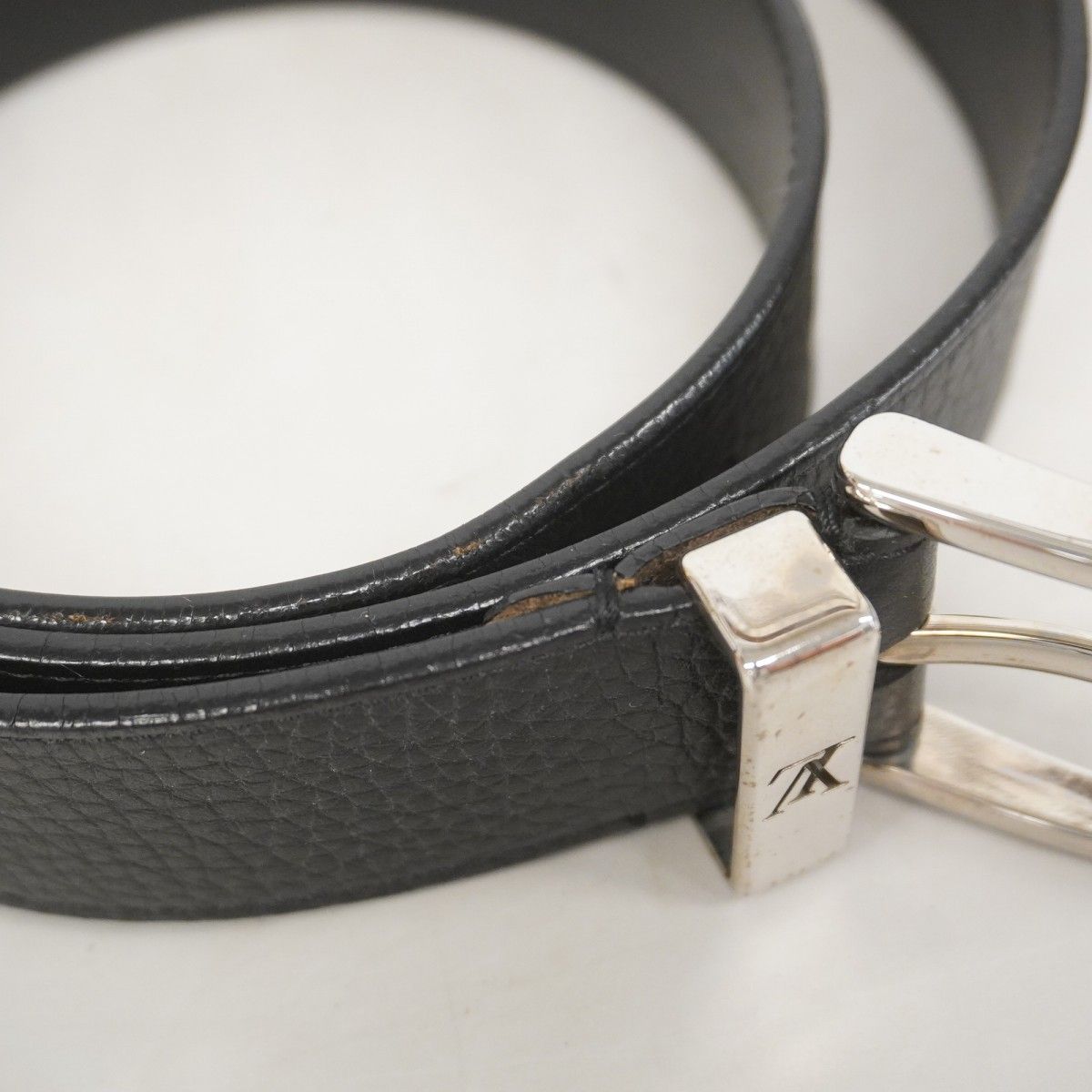 LOUIS VUITTON ルイ ヴィトン サンチュール ジーンズ ベルト レザー ブラック 黒 メンズ シルバー金具 90 M6812U