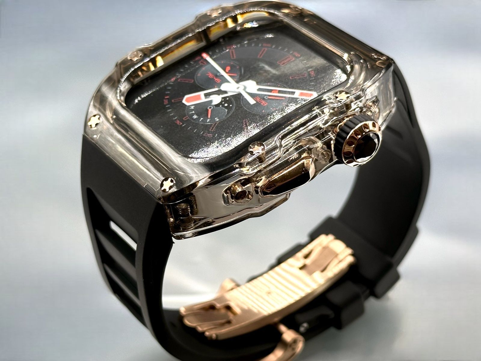 スモーク-ローズゴールド2 アップルウォッチバンド ラバーベルト カバー Apple Watch クリア ケース 44mm 45mm 4 5 6 7 8 se スポーツ メンズ レディース MEDICALDB_JP