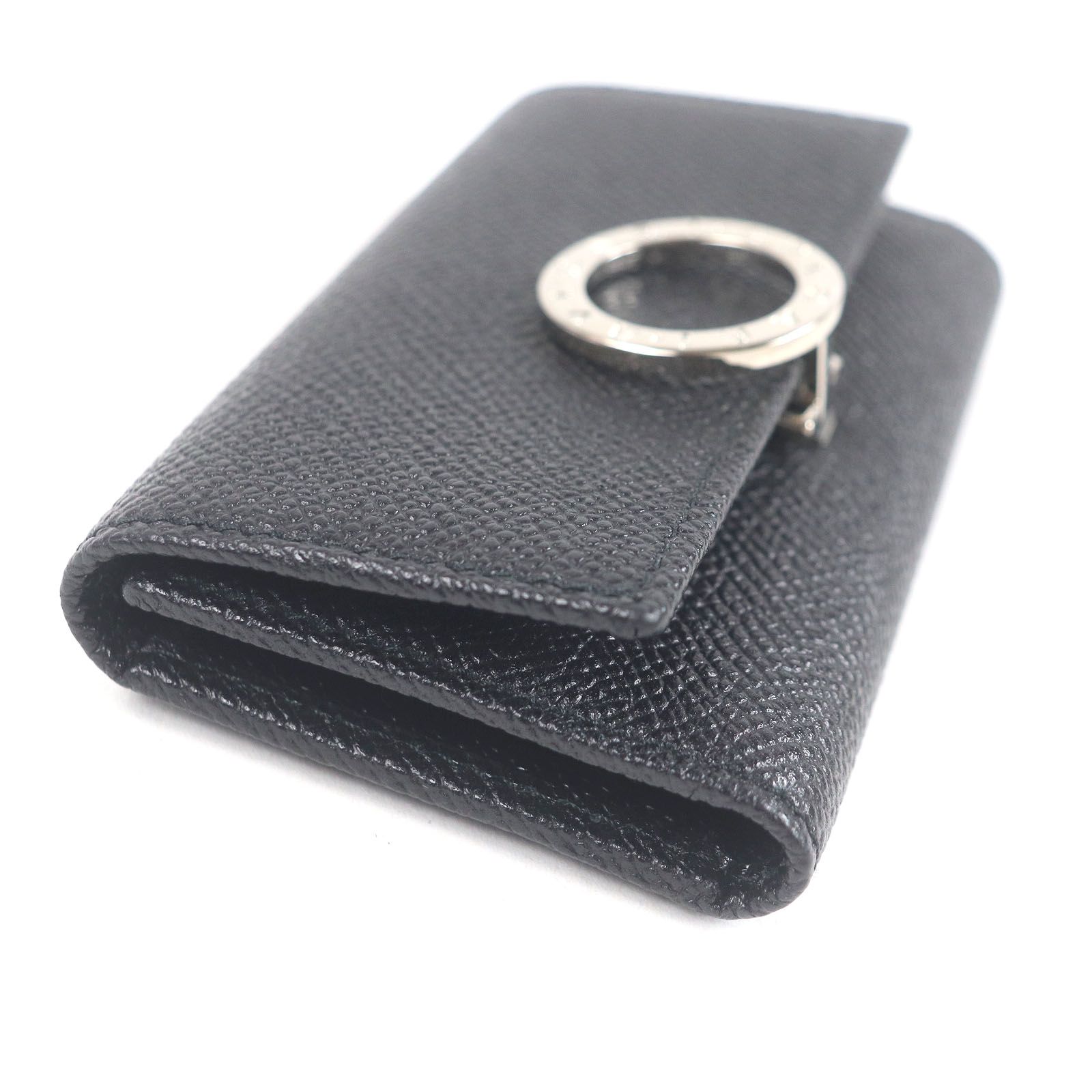 ♥品□BVLGARI ブルガリ 30422 レザー ブルガリブルガリ マン シルバーロゴ金具 三つ折り 6連 キーケース ブラック き イタリア製 メンズ MEDICALDB_JP