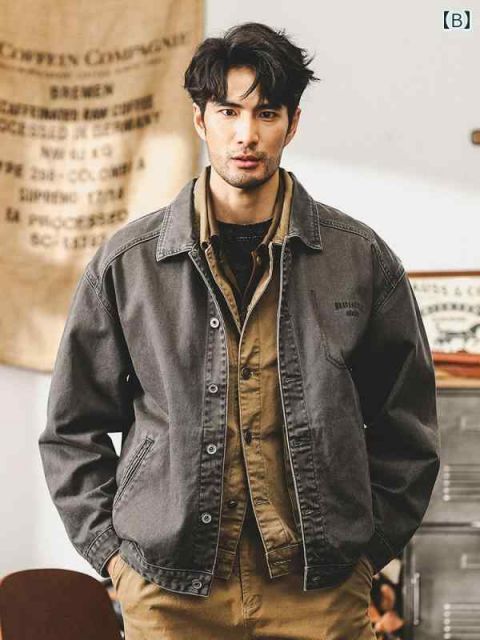 M メンズ ファッション オシャレ 男性用 シンプル 大人 かっこいい カジュアル ストリート ヒップホップ HipHop ジャケット レトロ スタイル ワークウェア ジャケット 春 ジャケット