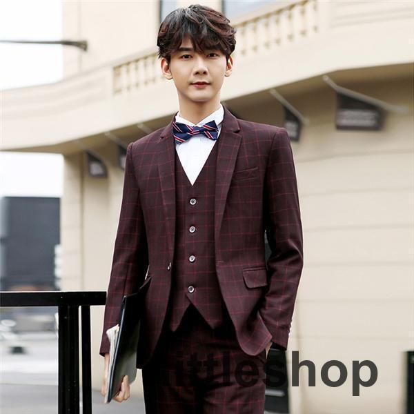 スリーピース スーツ メンズ ビジネススーツ チェック 1つボタン セットアップ 結婚式 3ピース カジュアルスーツ 細身 通勤 ビジネス パー MEDICALDB_JP