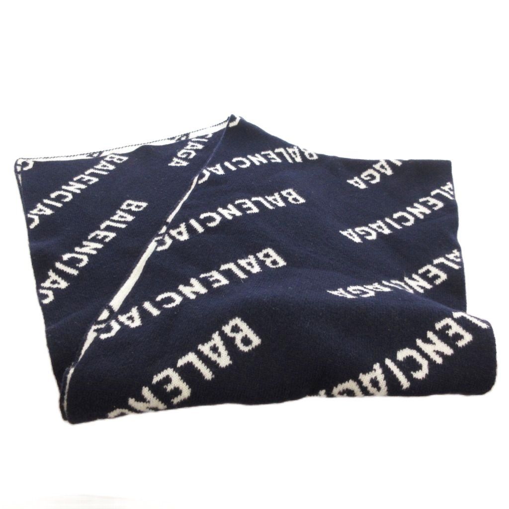 バレンシアガ BALENCIAGA ALLOVER LOGO SCARF 621020 オールオーバー ロゴ ニット マフラー ジャガード 総柄 紺 ネイビー 白 ホワイト |UO GY18 AA MEDICALDB_JP