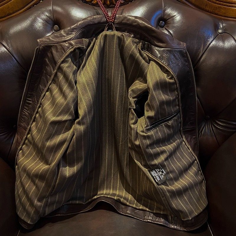 ♥ h 無ブランド メンズ 本革 レザージャケット ヴィンテージ風 秋冬用 修身 多ポケット インポート 無塗装オイルワックス牛革 コットン裏地 感 深ブラウン MEDICALDB_JP