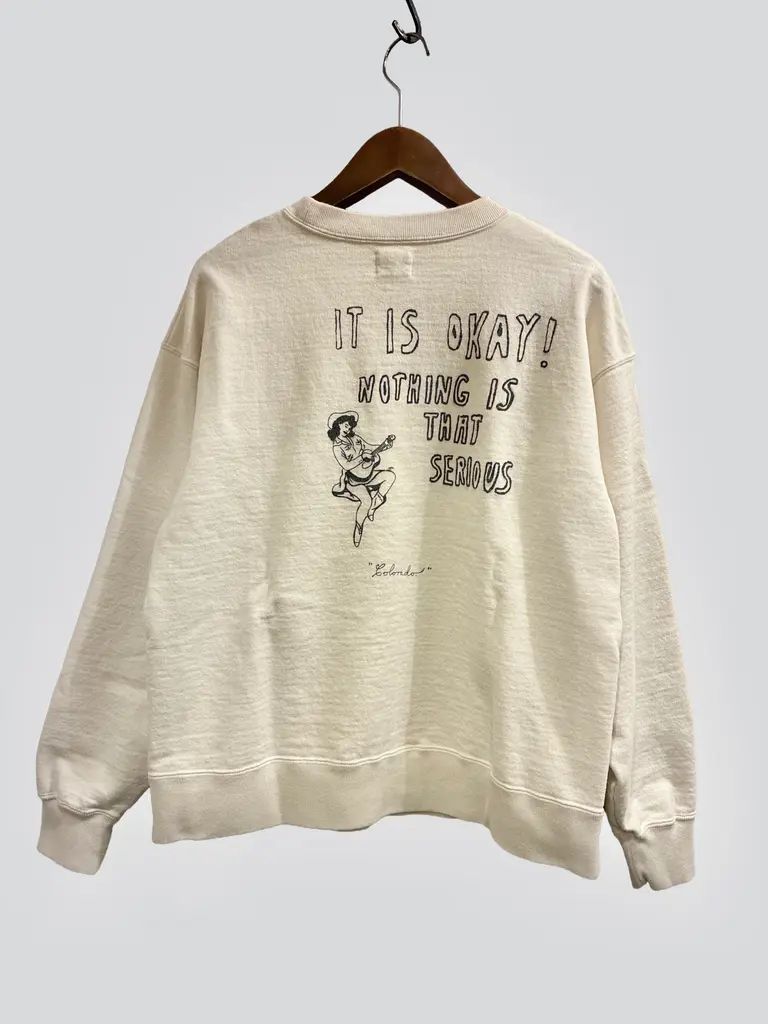 ♥品 BIG JOHN ビッグジョン | ハンドレタリングプリント クルーネックスウェットシャツ| ナチュラル | MTE013 Hand- paint style CREWNECK SWEATSHIRT Mサイズ MEDICALDB_JP