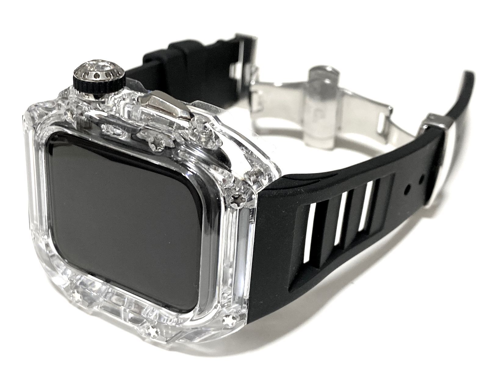 45㎜ AppleWatch アップルウォッチバンド ラバーベルトカバー ケース キラキラ メタルrsq13