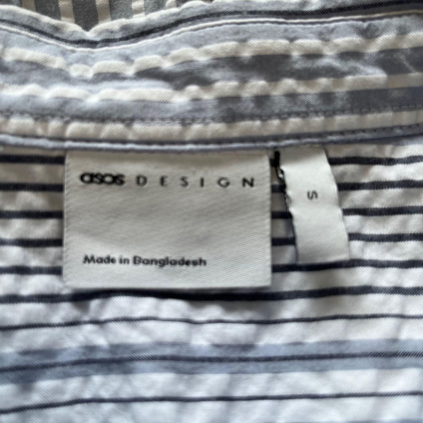 asos DESIGN エイソスデザイン ストライプ柄 オーバーサイズ 長袖 シアサッカー シャツ 紳士 羽織り トップス コットン メンズ サイズS ホワイト×ブルー系 秋 久喜倉庫店 K660Y MEDICALDB_JP