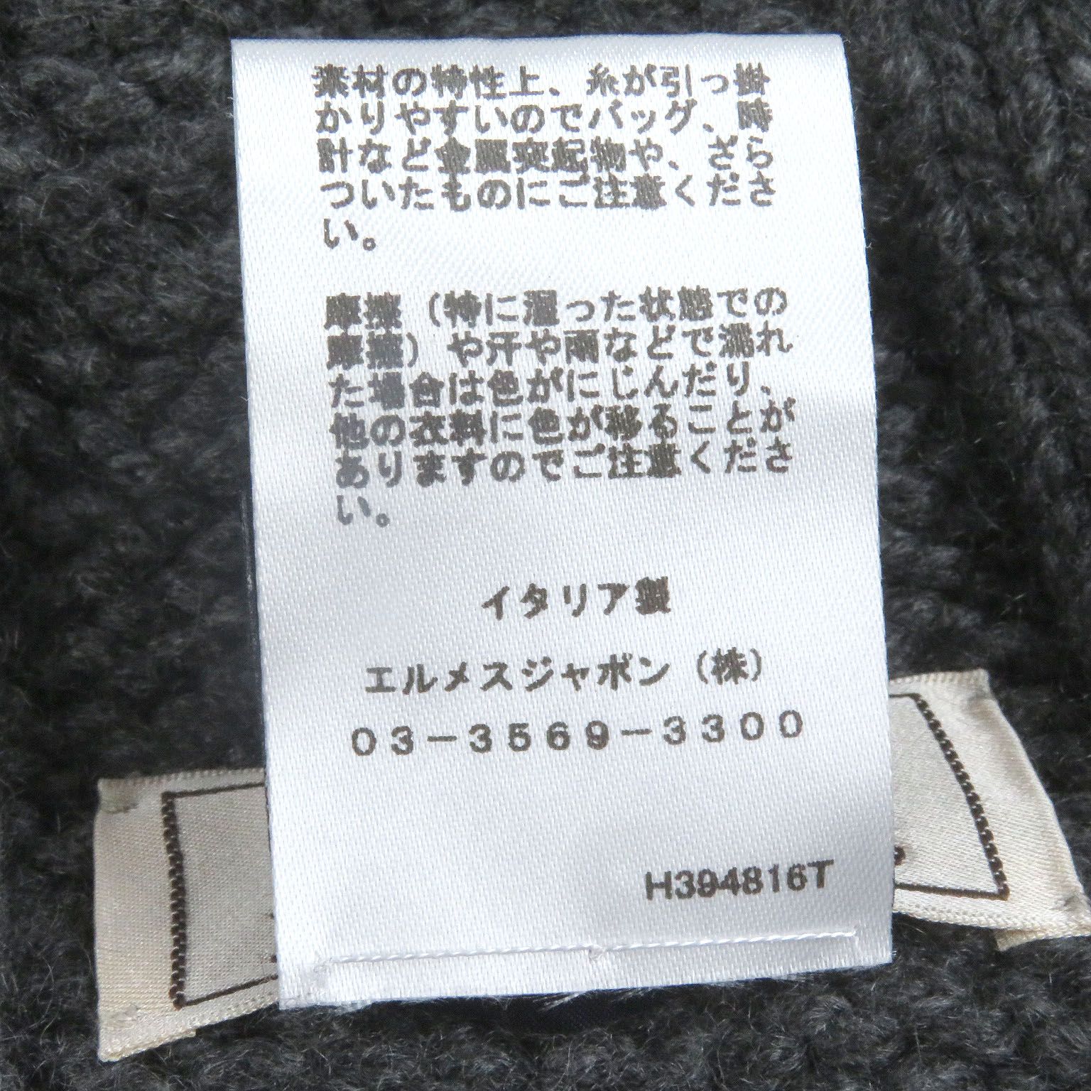 □HERMES エルメス フォーブル カシミヤ100% シェーヌダンクル柄 ニットマフラー ストール ダークグレー イタリア製 正規品 メンズ MEDICALDB_JP