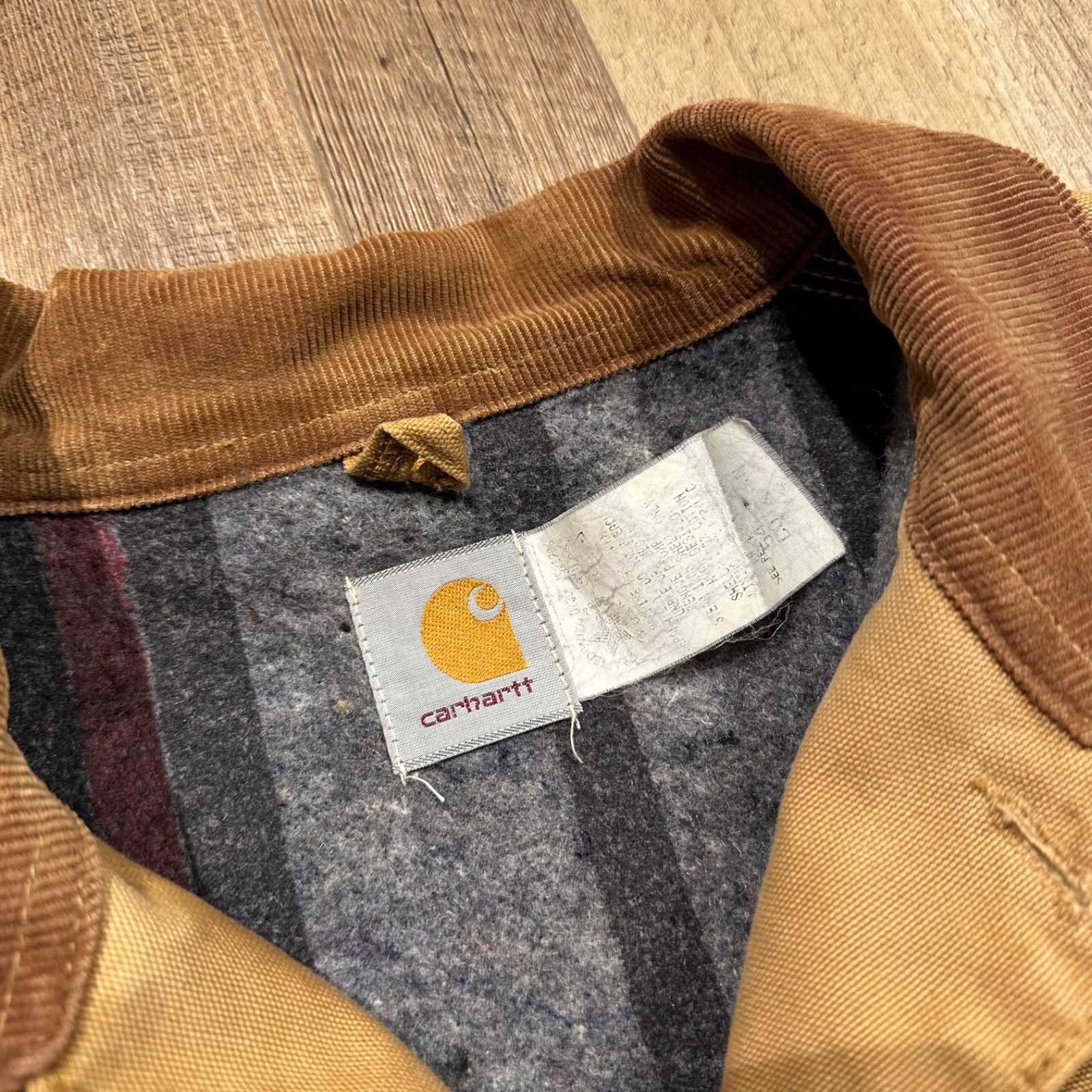 80s carharttカーハート ブランケットライナー ダック地 チョアコート カバーオール 茶 フェード ビンテージ ジャケット ビッグサイズ