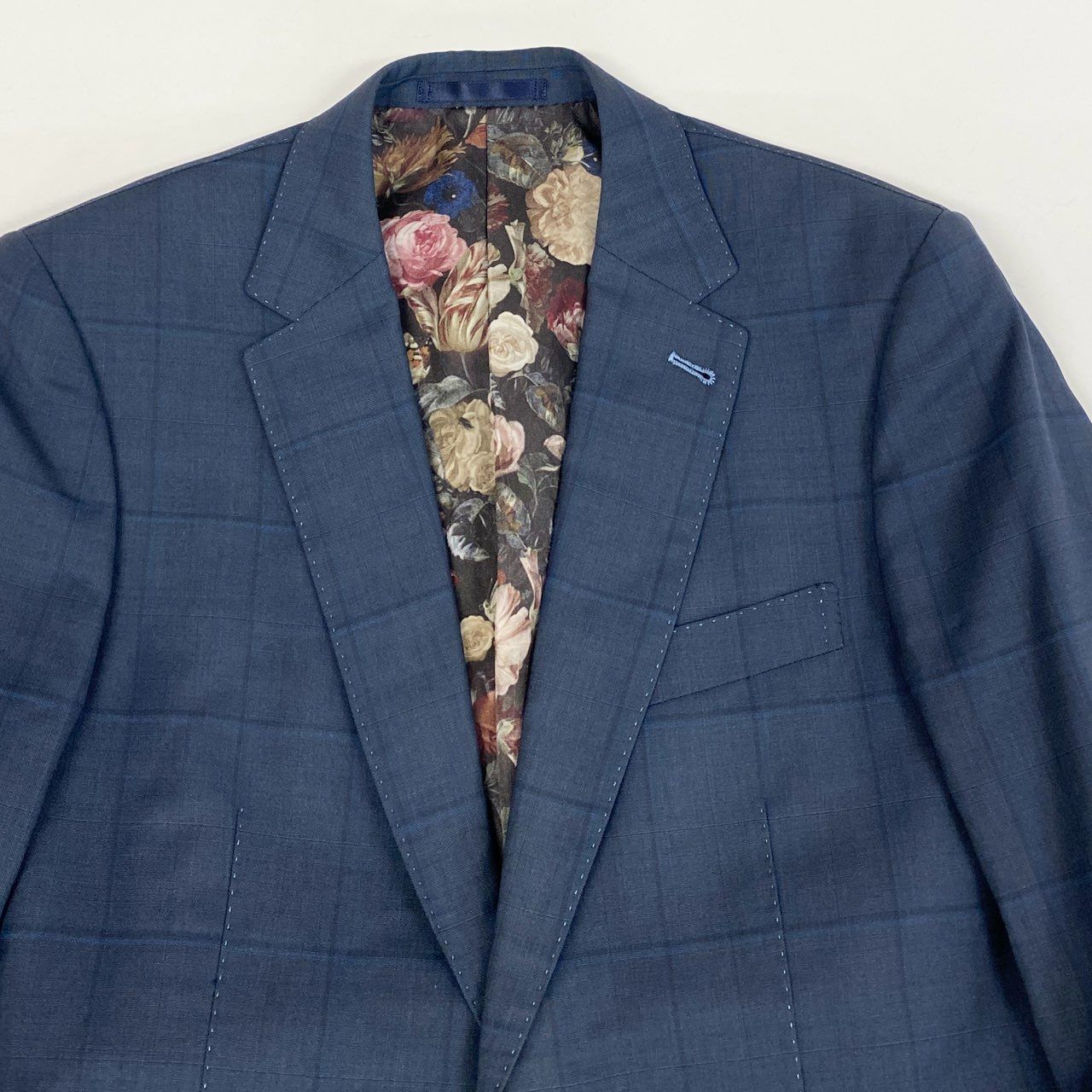 33i25 Paul Smith ポールスミス イタリア製生地 裏地花柄 シングルスーツ セットアップ M ブルー チェック ウール メンズk02i MEDICALDB_JP