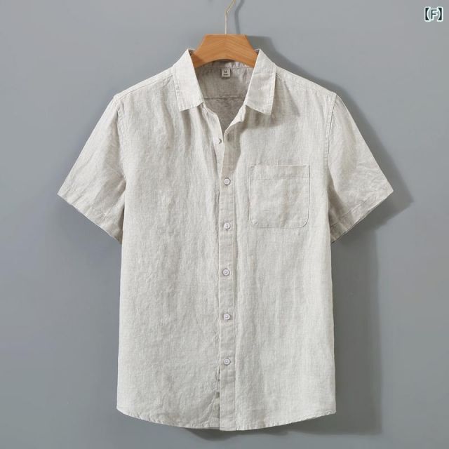 2XL メンズ ファッション 服 男性用 オシャレ シンプル 大人 かっこいい 大きいサイズ ストリート 紳士服 リネン 先染め 半袖 シャツ リネン フル リネンシャツ サマートップス MEDICALDB_JP