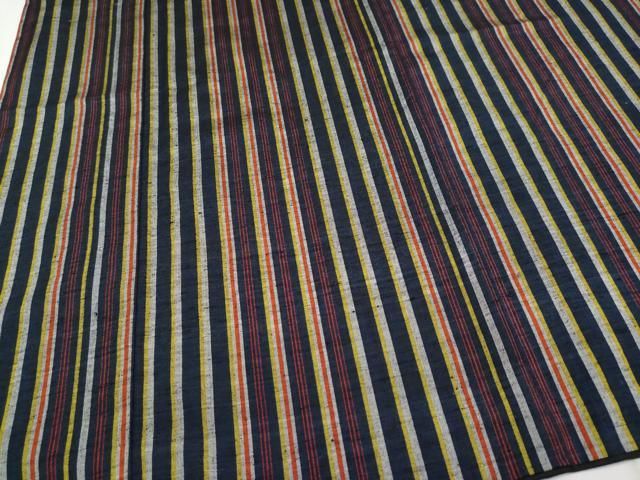 平和屋着物▽男性 本塩沢 単衣 縞 正絹 AABB6214jh