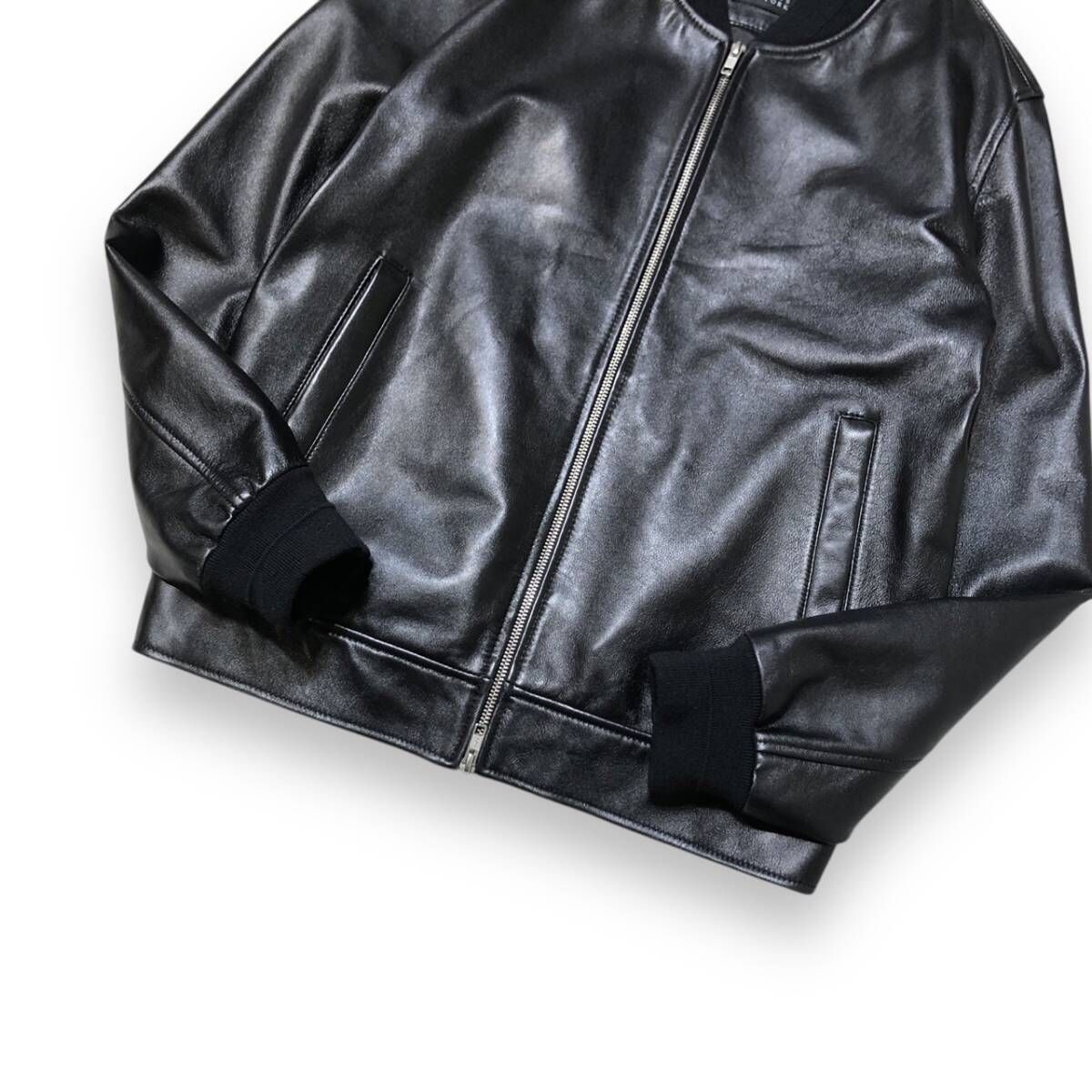 BARNEYS NEWYORK Leather Blouson Jacket Black size 50 レザーブルゾン その他レザージャケット バーニーズ ニューヨーク MEDICALDB_JP