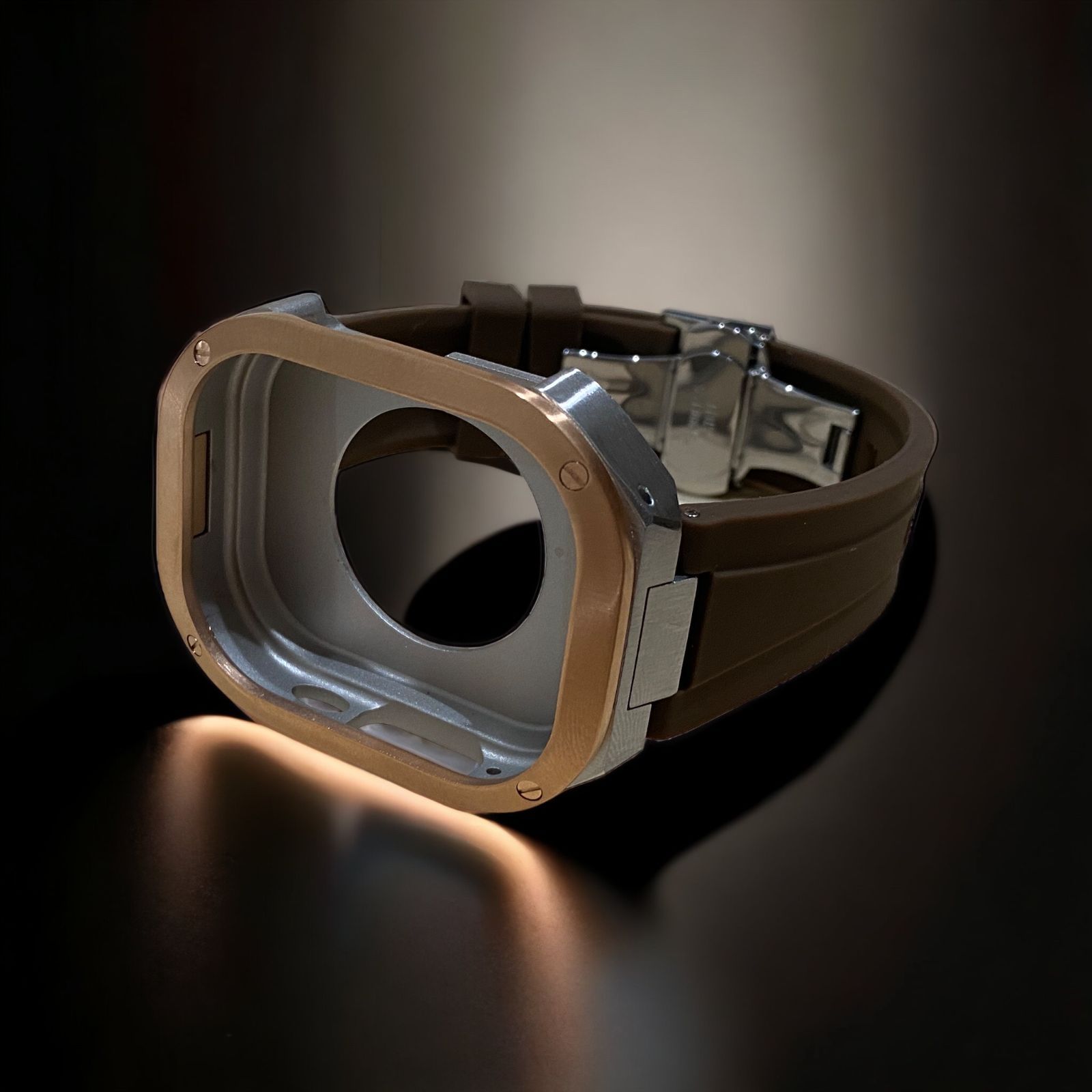 ブラウン×ローズゴールドシルバー 49mm apple watch ultraアップルウォッチラバーメタルカバーセット ウルトラ 49ミリ用 カスタム ultra2 MEDICALDB_JP