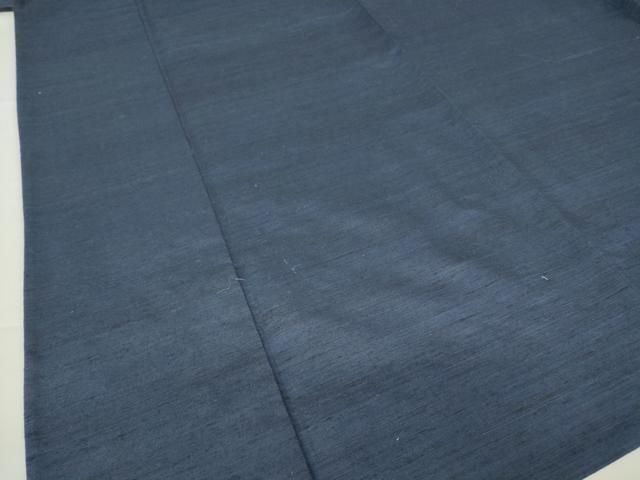 平和屋着物●男性 紬 アンサンブル 色無地 濃藍色 正絹 AABA5035np