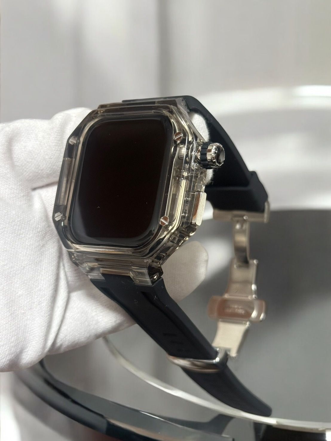 クリアブラック ホワイト ローズゴールド◆アップルウォッチ ラバーベルト カバー クリア ケース 40mm 41mm 44mm 45mm 4 5 6 7 8 9 se スポーツ メンズ レディース 4ネジ Apple Watch バンド オリジナルバックル付き