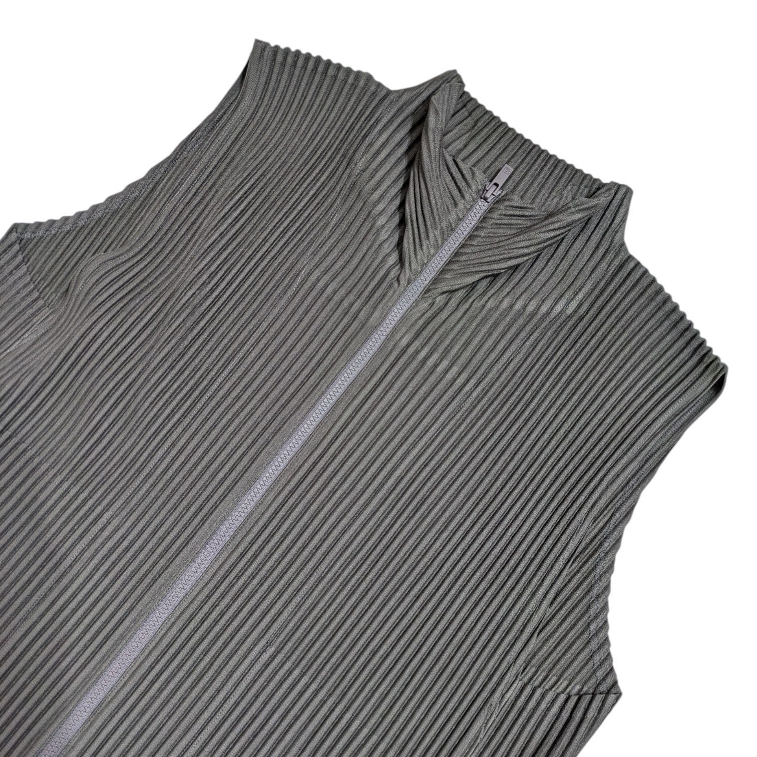 HOMME PLISS ISSEY MIYAKE MONTHLY COLOR MARCH オムプリーツ イッセイミヤケ 前開きジップベスト グレーカーキ サイズ 3 MEDICALDB_JP