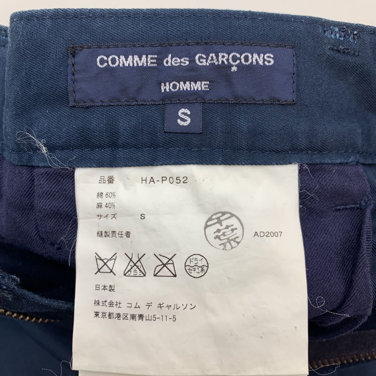 コムデギャルソンオム COMME des GARCONS HOMME 超定番 濃紺 コットンパンツ Sサイズ 比較的 ストレート ネイビー Ja2425 MEDICALDB_JP