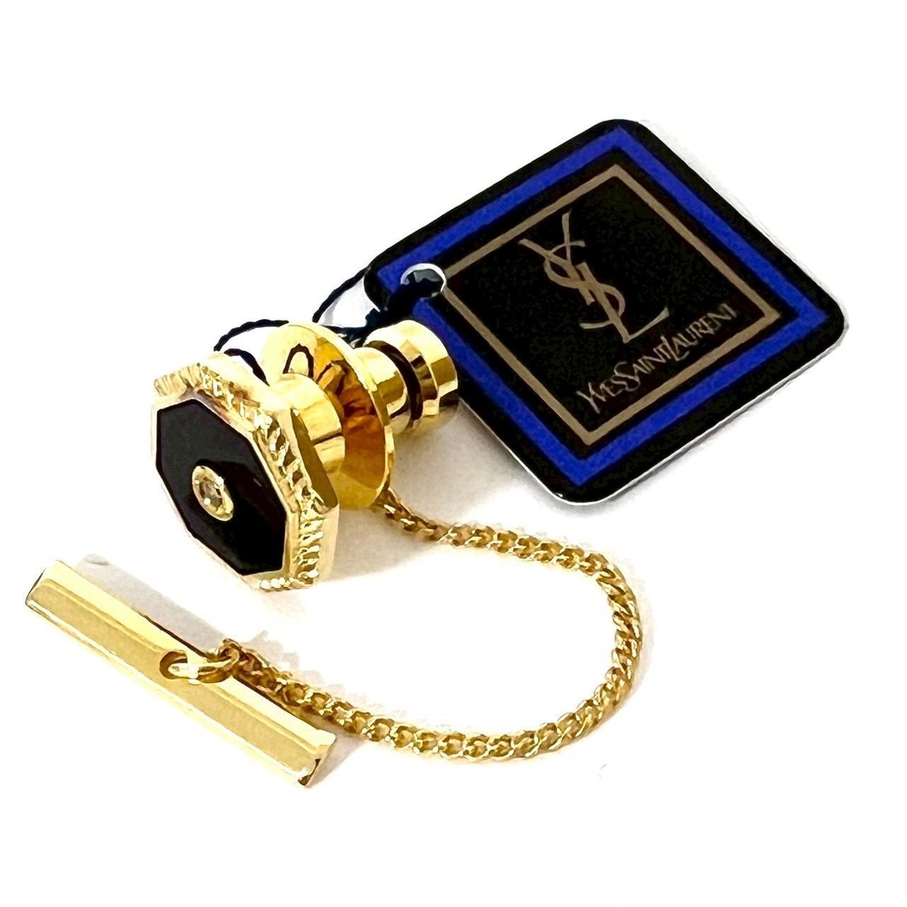 SD2519 YVES SAINT LAURENT イヴサンローラン 1Pダイヤ カフス カフリンクス カフスボタン タイピン タイタック ラペルピンSV925 ゴールド×ブラック MEDICALDB_JP