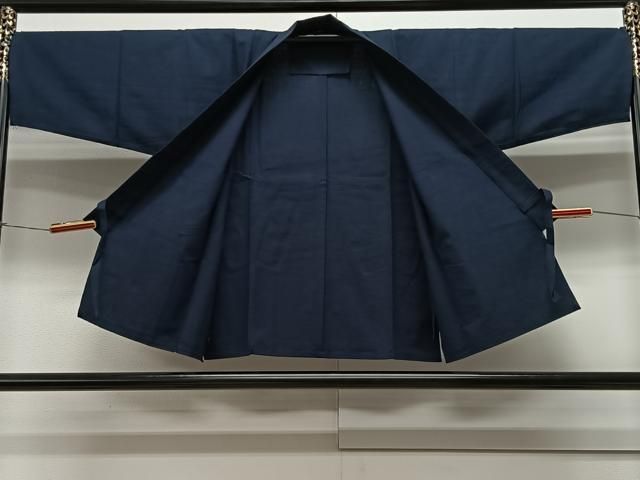 平和屋着物●男性 紬 アンサンブル 色無地 鉄御納戸色 正絹 AABB0396ph