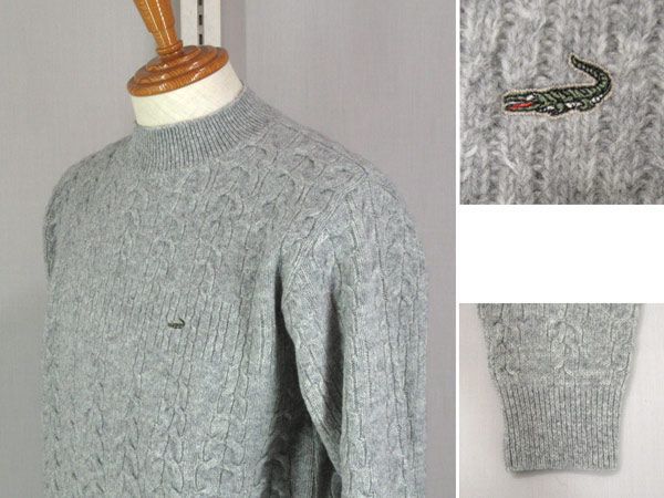 秋冬 クロコダイル ハイネックセーター|ニット 毛 ケーブル柄 クロコダイルマーク付 ライトグレー M Lの検索結果