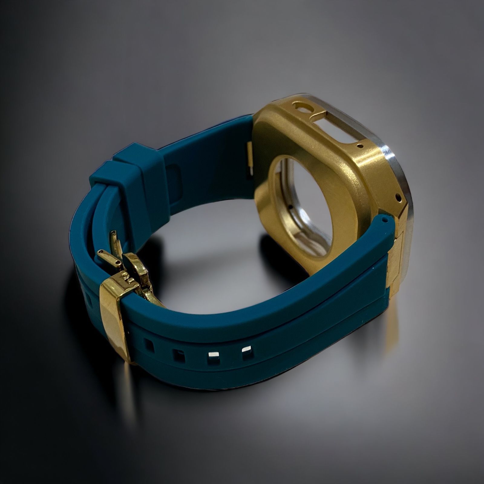 スモークブルー×シルバーゴールド 49mm apple watch ultraアップルウォッチラバーメタルカバーセット ウルトラ 49ミリ用 カスタム ultra2 MEDICALDB_JP