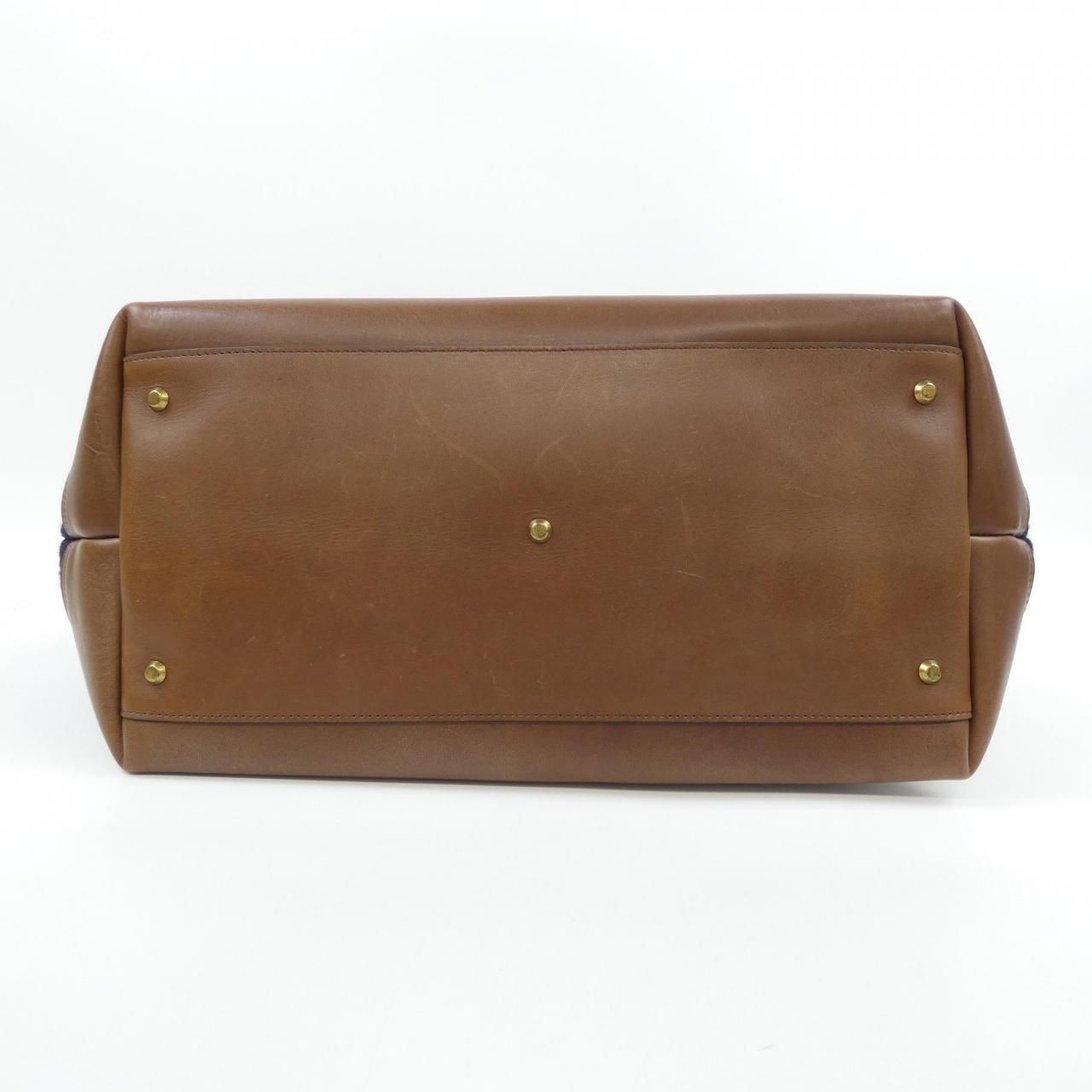 GUCCI グッチ GGキャンバス レザー ロゴプレート ハンド トートバッグ シルバー金具 ブラウン 73982