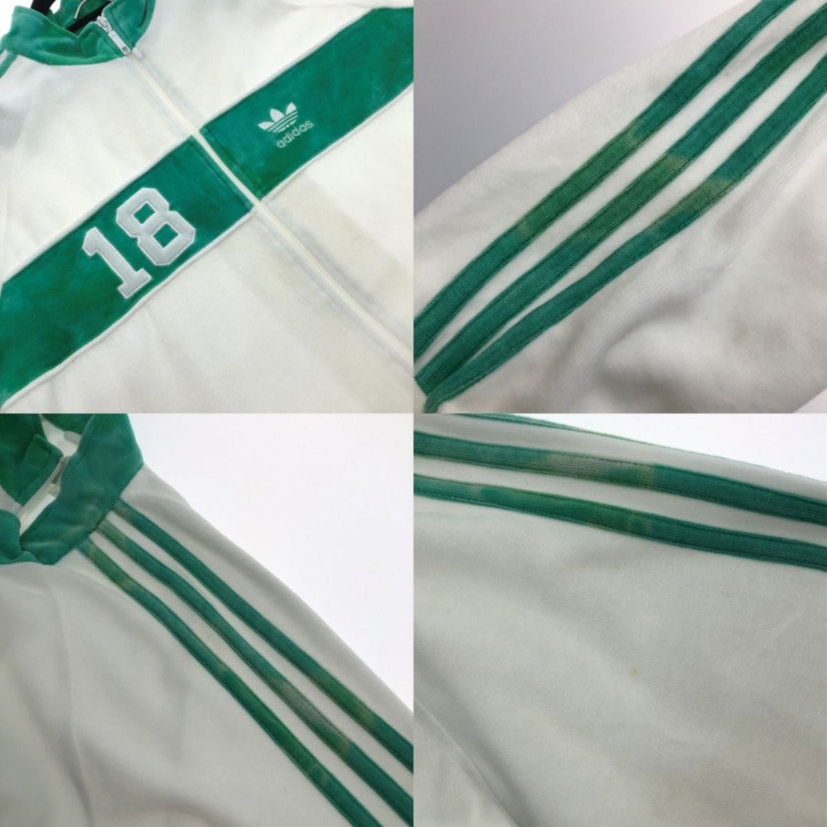 □□adidas Originals アディダスオリジナルス トレフォイルロゴ ベロア セットアップ SIZE O ATA001 ホワイト×グリーン MEDICALDB_JP