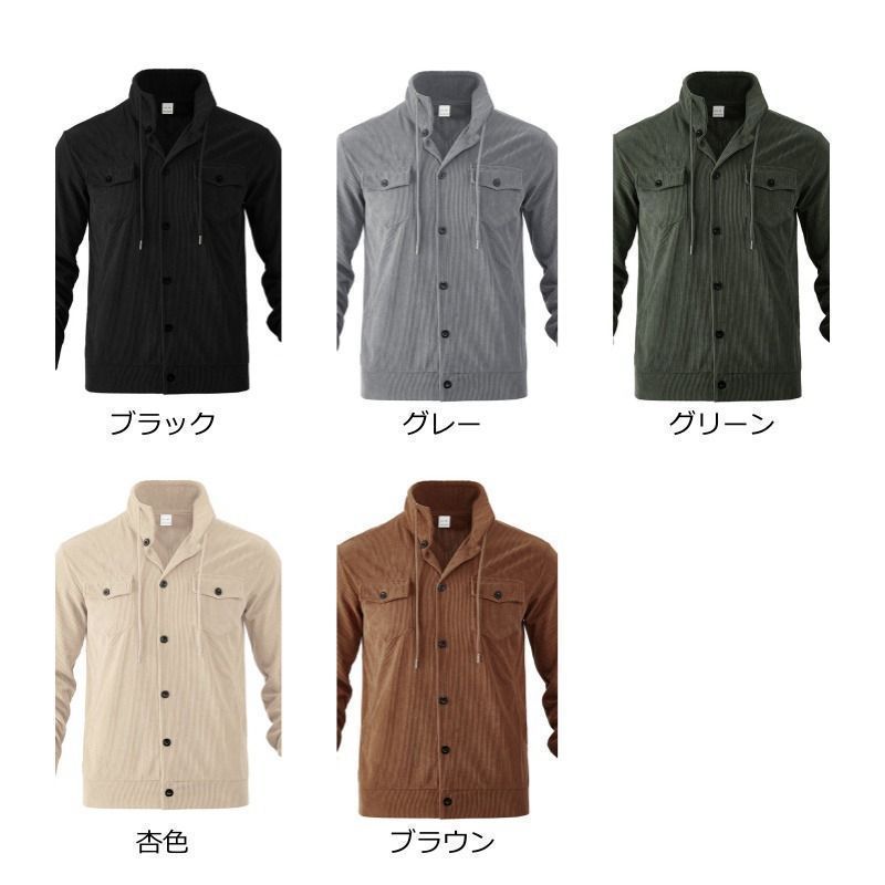 コーデュロイ 即 OK ジャケット メンズ 無地 ブルゾン ポケット付き ボタン 秋 冬 折り襟 襟付き ワークシャツ 長袖 アウター 羽織 トップス 大きいサイズ ゆったり 大人 おしゃれ カジュアル シンプル yifengyud132 MEDICALDB_JP