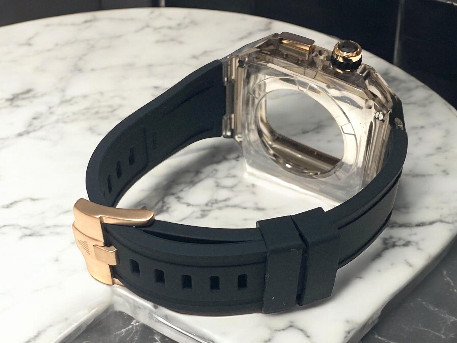 スモークブルー×ゴールドブラック 49mm apple watch ultraアップルウォッチラバーメタルカバーセット ウルトラ 49ミリ用 カスタム ultra2