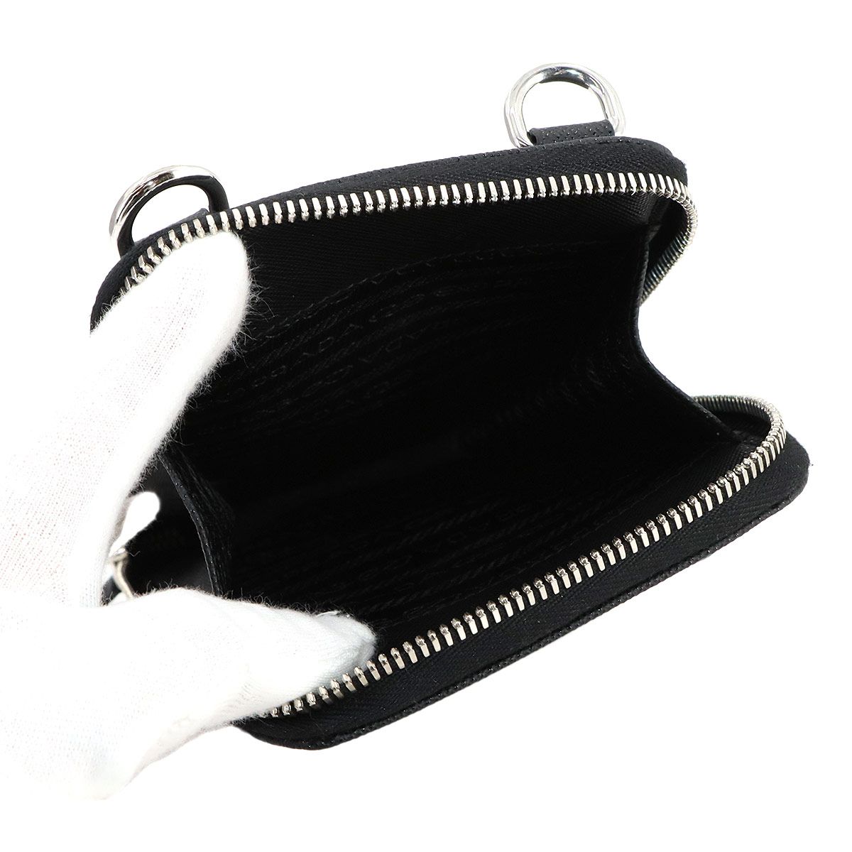 超 PRADA プラダ スマホショルダー ネックストラップポーチ トライアングルロゴ サフィアーノ レザー ブラック 大人気商品