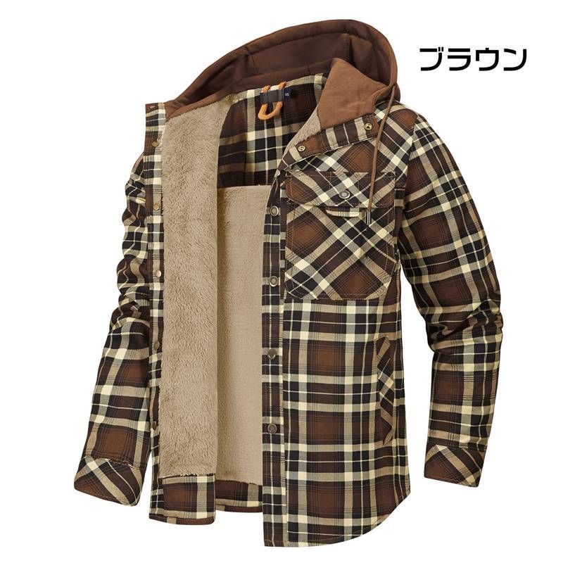 ボアジャケット ♥ メンズ チェック柄 トップス フード付き 冬 暖かい もこもこ 裏ボア 肘当て付き 厚手 防寒 シャツジャケット あったか 裏起毛 作業 ワーク カジュアル ジャケット アウター esyxzd41 MEDICALDB_JP