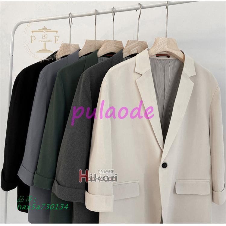 カジュアルスーツ メンズ 韓国 ファッション 七分袖 スーツ セットアップ ゆったり カジュアル 2ピース テーラード 春夏秋 ビジネス hax5a730134 MEDICALDB_JP