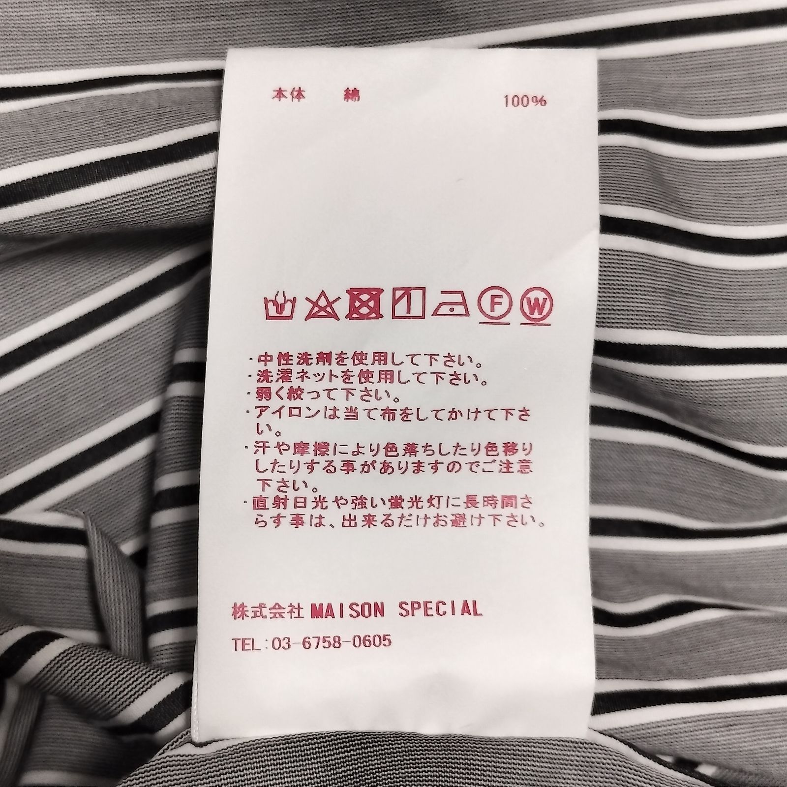 MAISON SPECIAL × TOMAS MASON プライムオーバーシャツ サイズ01 М〜XL相当 グレー ストライプ 長袖シャツ コットン MEDICALDB_JP