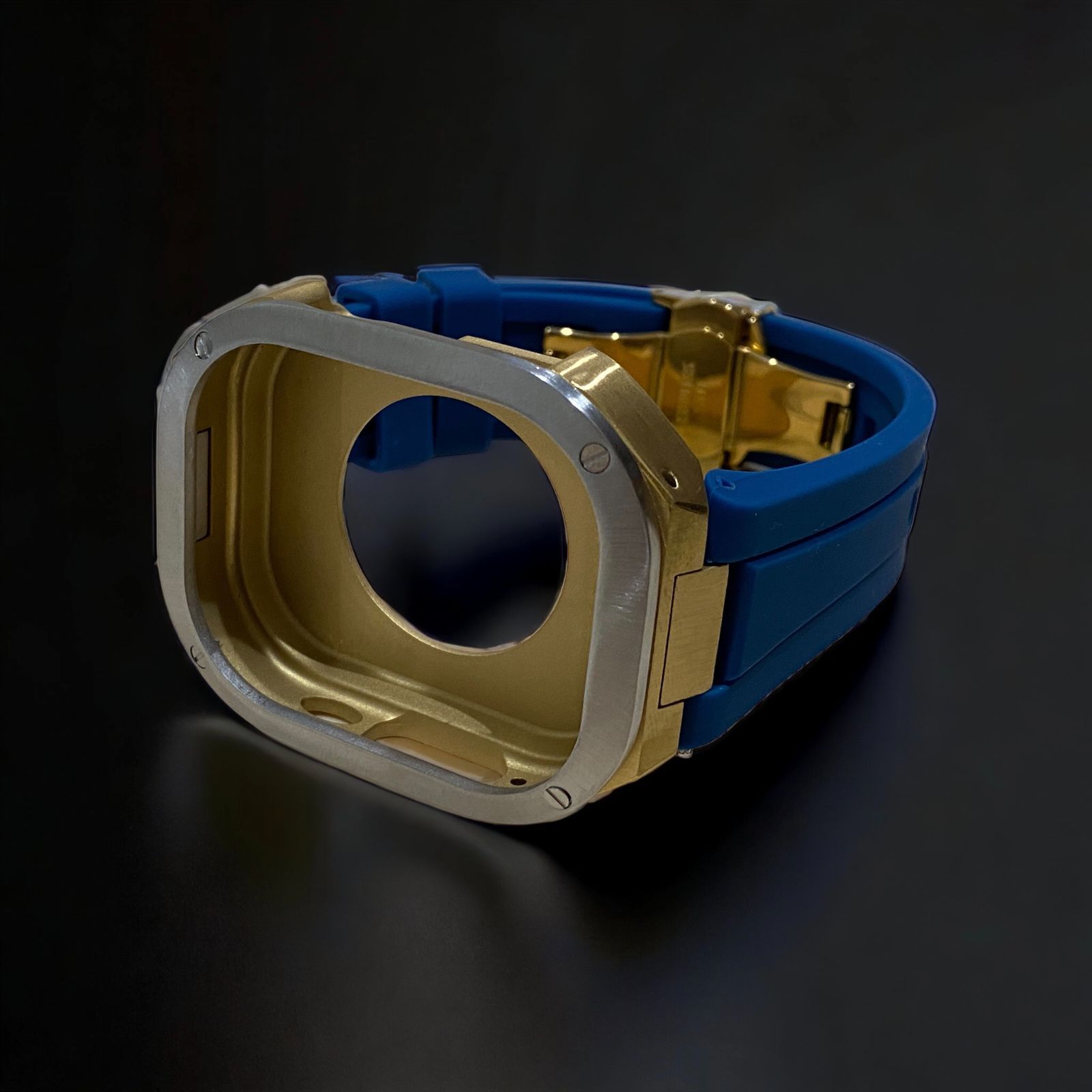 ネイビー×シルバーゴールド 49mm apple watch ultraアップルウォッチラバーメタルカバーセット ウルトラ 49ミリ用 カスタム ultra2 MEDICALDB_JP