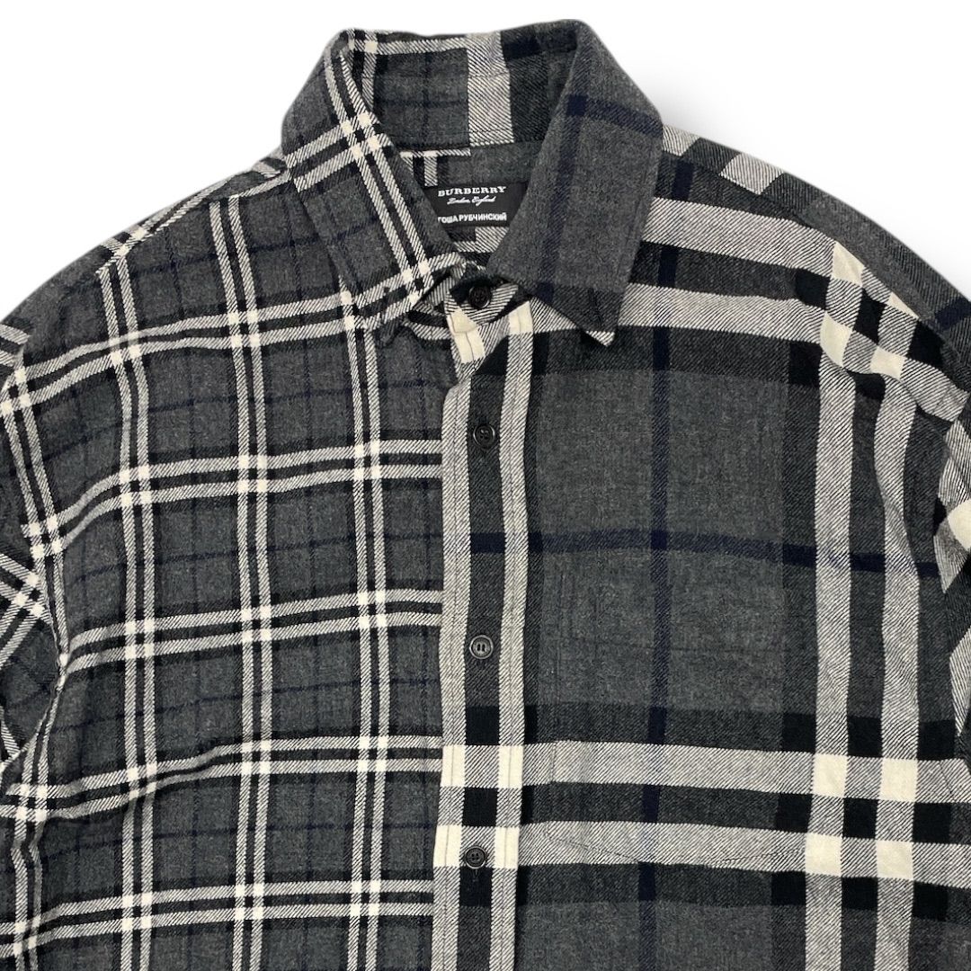 BURBERRY × Gosha Rubchinskiy バーバリー ゴーシャラブチンスキー フランネルシャツ シャツジャケット チェック柄 ウール 黒 灰色 白 ブラック グレー ホワイト Sサイズ メンズ 冬 ゴーゴー古着久喜倉庫店 No.1223 MEDICALDB_JP