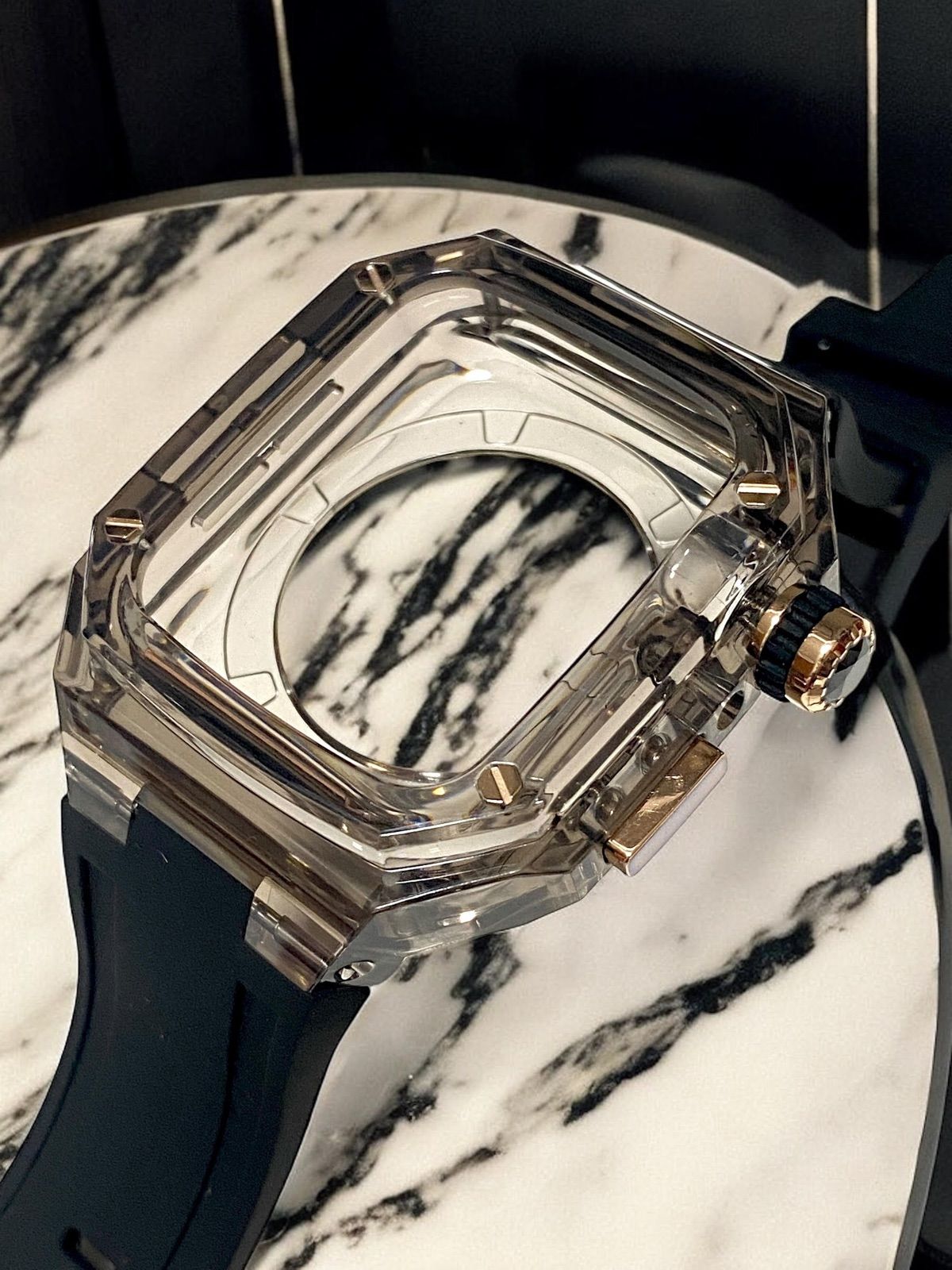 スモークブルー×ゴールドブラック 49mm apple watch ultraアップルウォッチラバーメタルカバーセット ウルトラ 49ミリ用 カスタム ultra1|2|3