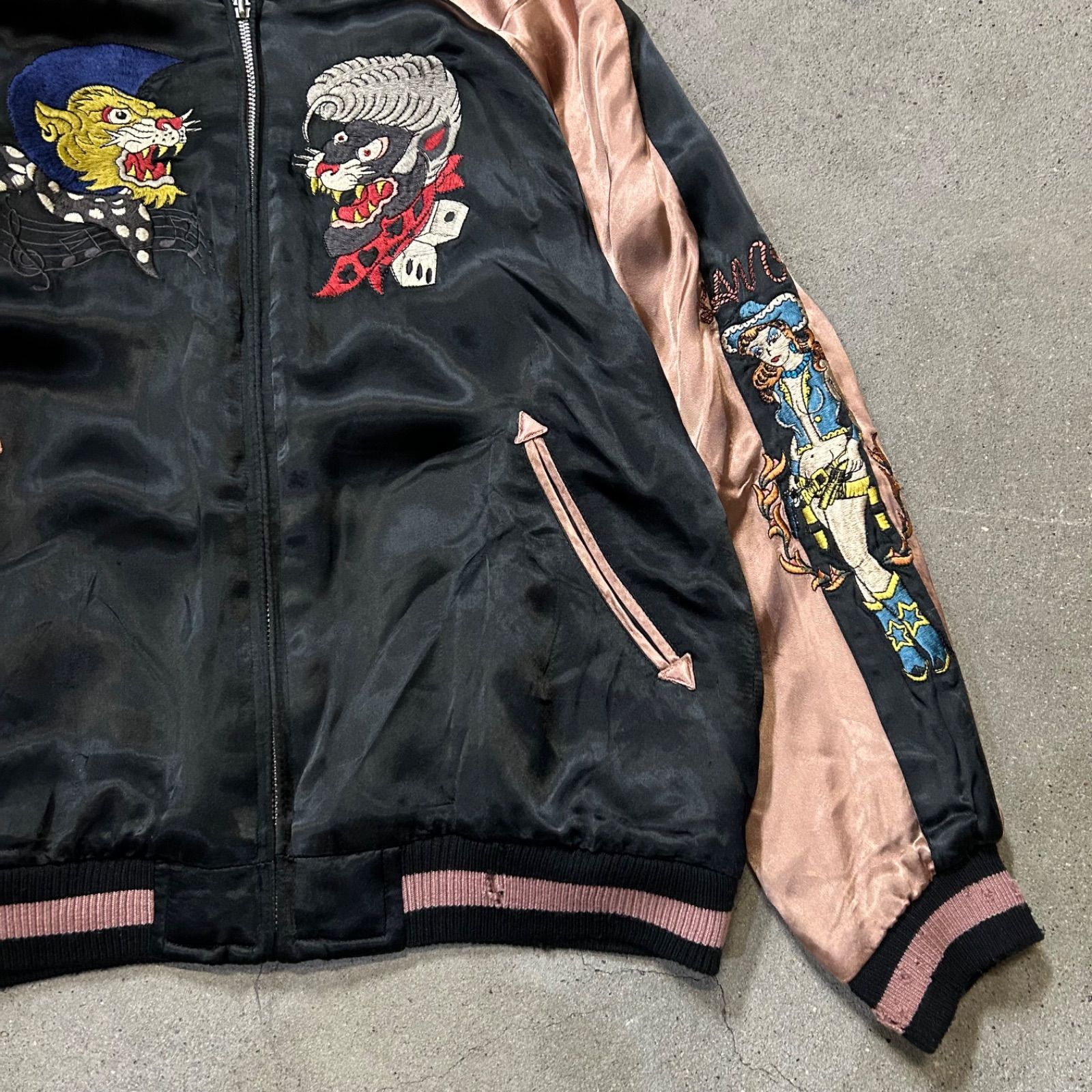 テーラートーヨー TAILOR TOYO 東洋 リバーシブルサテンスカジャン ブルゾン ジャケット アウター ショート丈 刺繍 ウール混 S 黒 ブラック ピンク TT12556 |BB